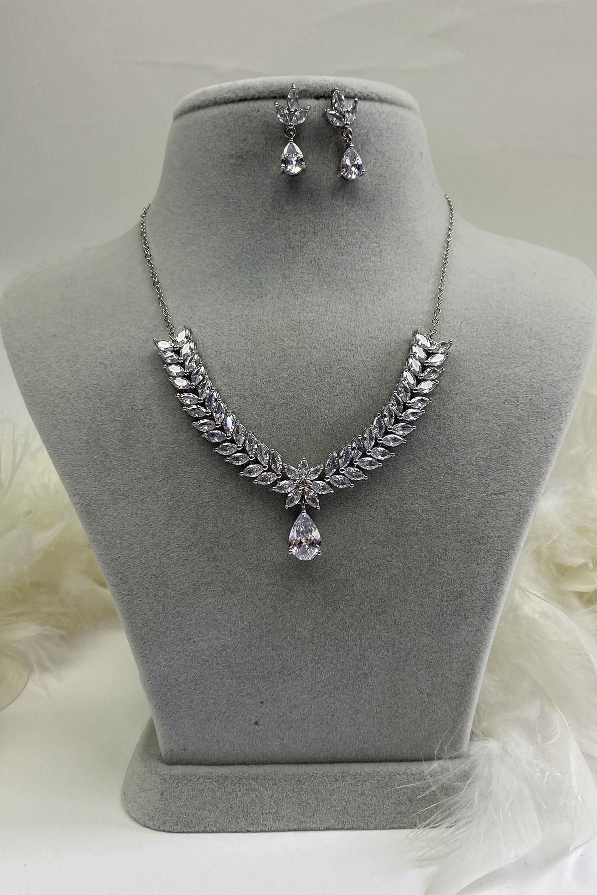 Zirkon Taşlı Damla Ve Mekikli Kolye Küpe Seti