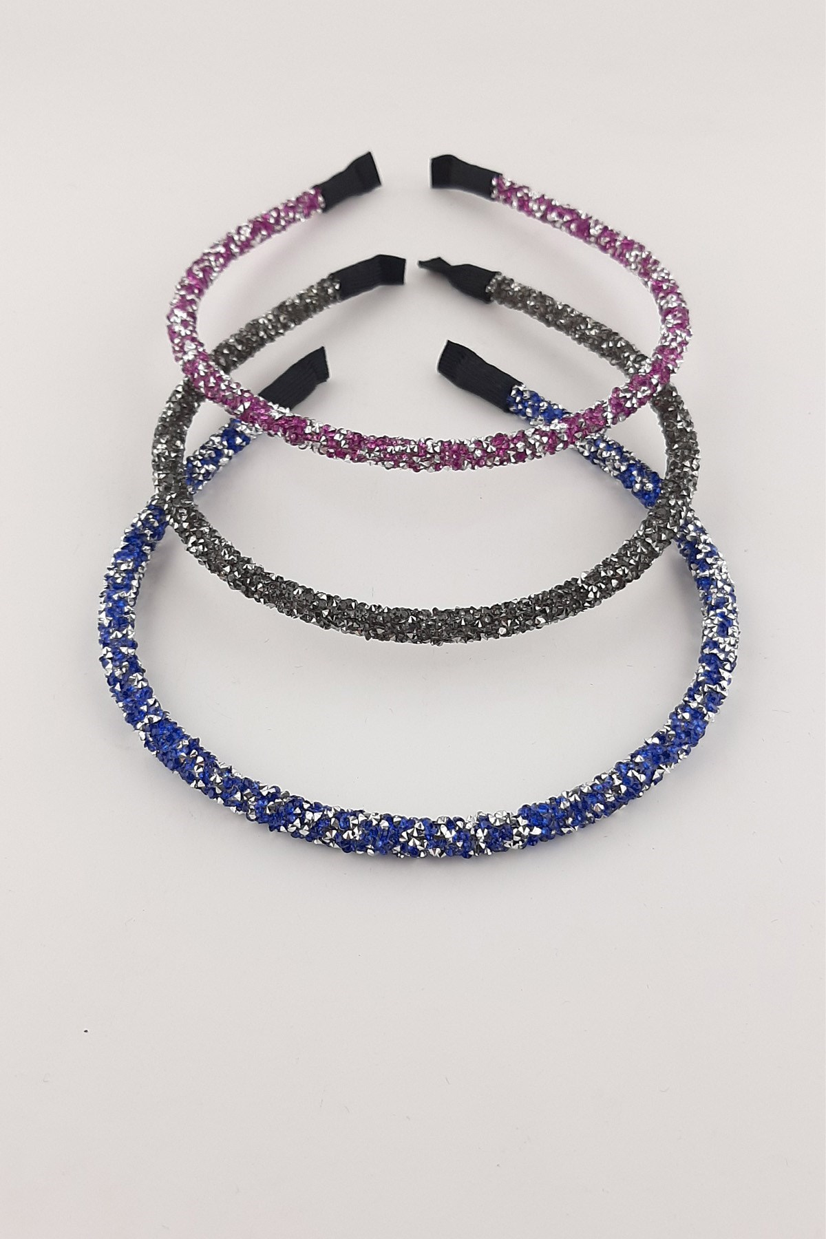 Pembe Antrasit Saks Mavisi 3'lü Taşlı Taç