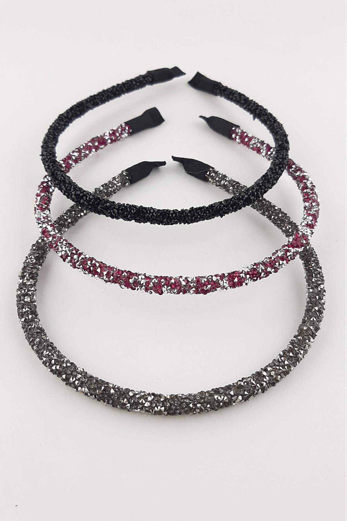 Siyah Fuşya Antrasit 3'lü Taşlı Taç